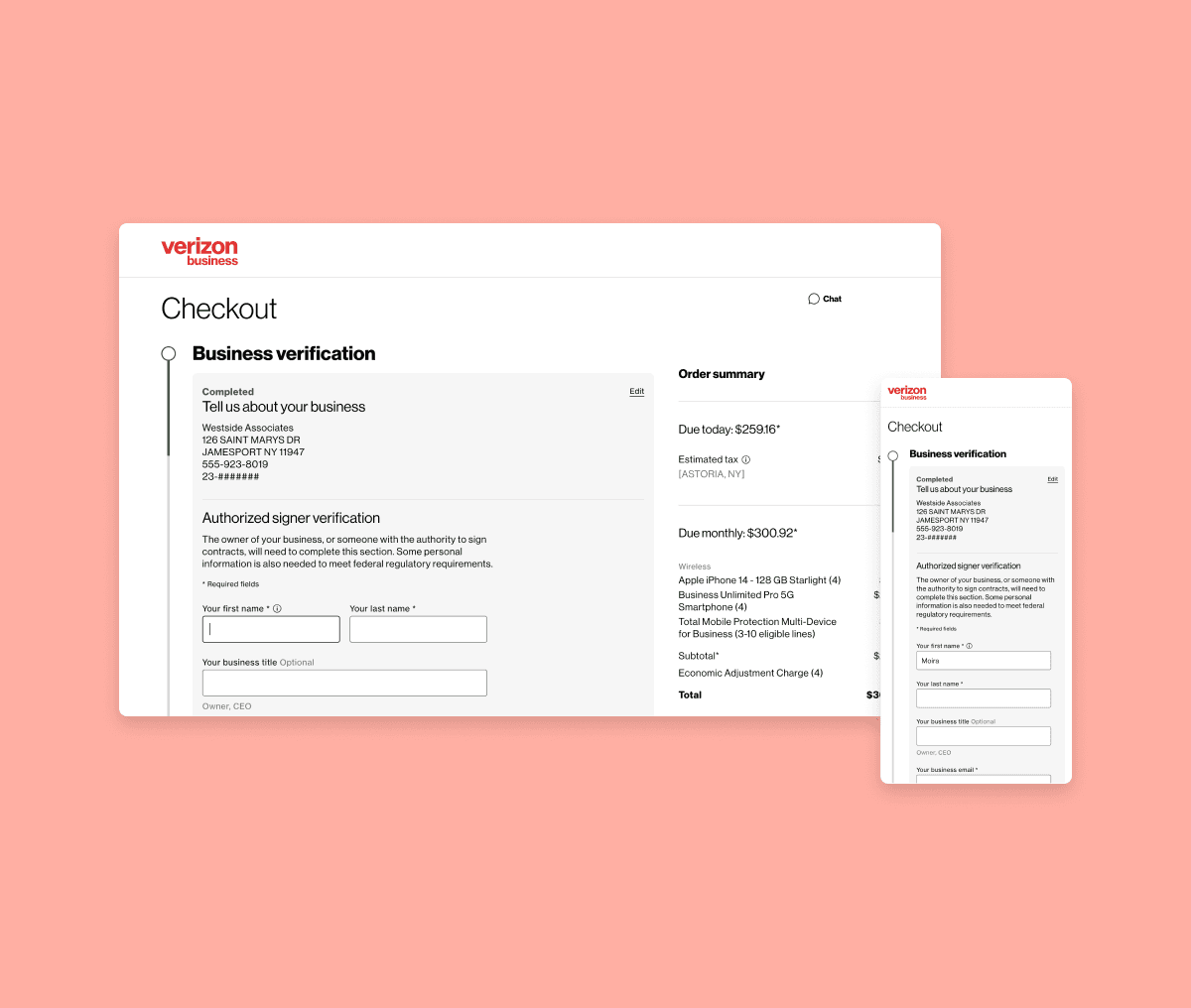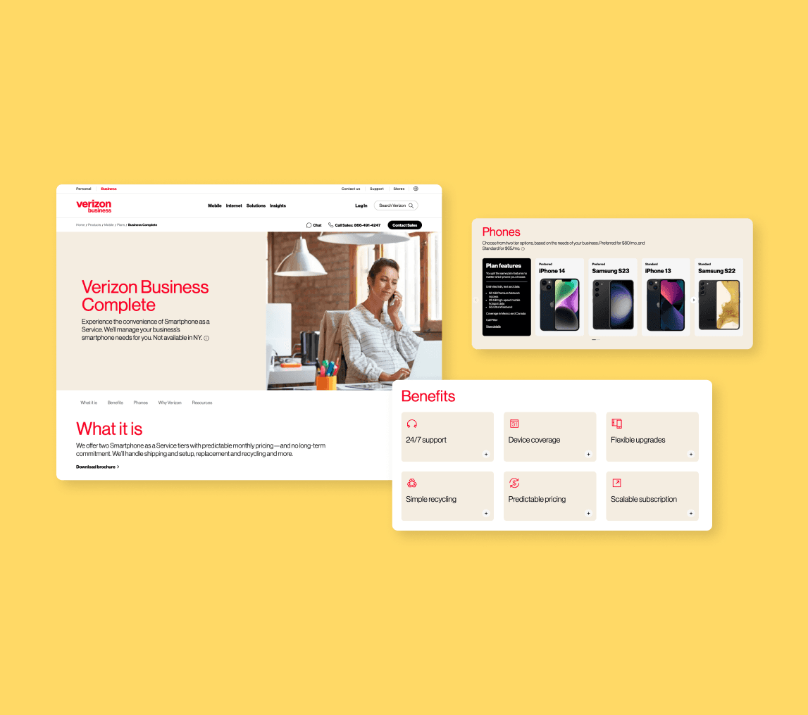 Currently, I'm shaping the e-commerce journey for Verizon's business customers. In my spare time, I mentor future UX stars at Designlab.