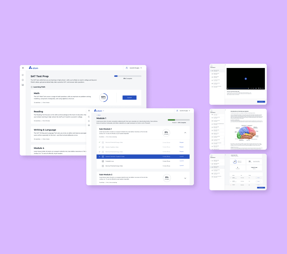 Built a modular education experience validated through usability testing, improving student task success and supporting multi-brand deployment.